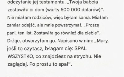 Kiedy moja babcia zmarła, zostawiła mi swój dom i notatkę, która przeraziła mnie do szpiku kości: „Spal wszystko, co jest…